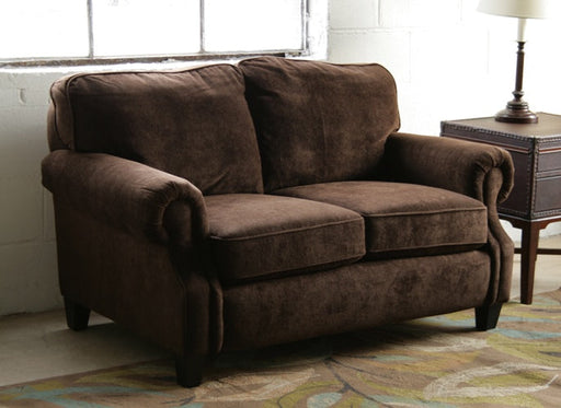 Brown Velvet Transitional Rolled-Arm Loveseat